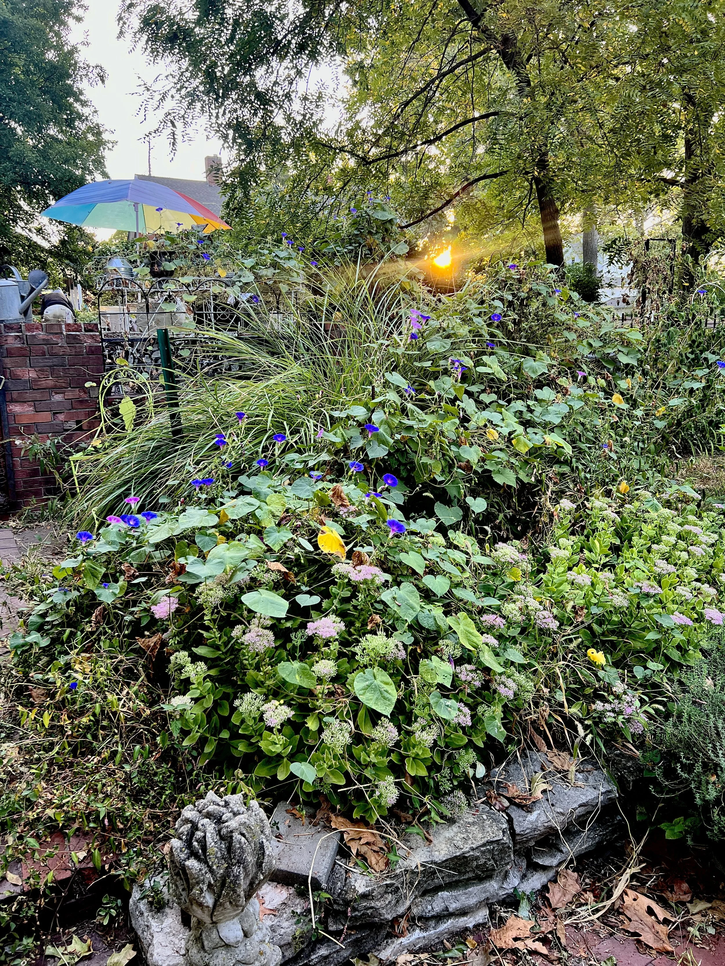 To hedge our bets (and possibly our property line), we also planted three native redbuds—because nothing says “we care about the environment” like driving two hours round-trip in a gas-powered vehicle to pick up Earth-saving trees from a nursery in the middle of the state. Sustainability, but make it scenic. The third redbud just showed up one day, sprouting defiantly through a tear in the landscape fabric and gravel by the back gate like a tiny green middle finger to our garden plans. Naturally, we yanked it out of its scrappy little birth canal and gave it a new home, fully expecting it to perish out of spite or botanical stubbornness. Every expert warns redbuds hate being transplanted, especially when you go poking at their precious taproots. But this one? It’s thriving. Possibly out of spite. And yet, we respect that energy.